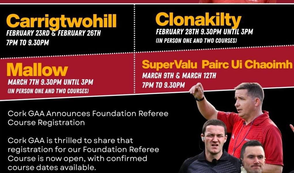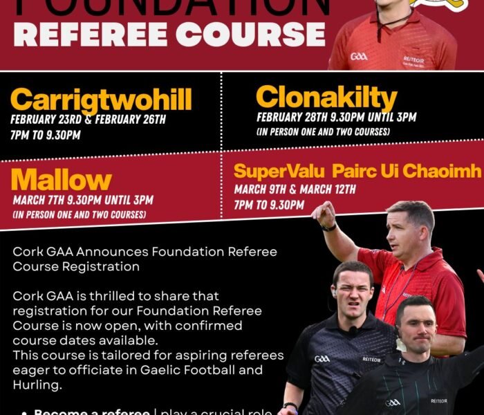 Cork GAA has launched its Foundation Referee Course, which will be hosted at Mallow GAA, offering new referees the chance.