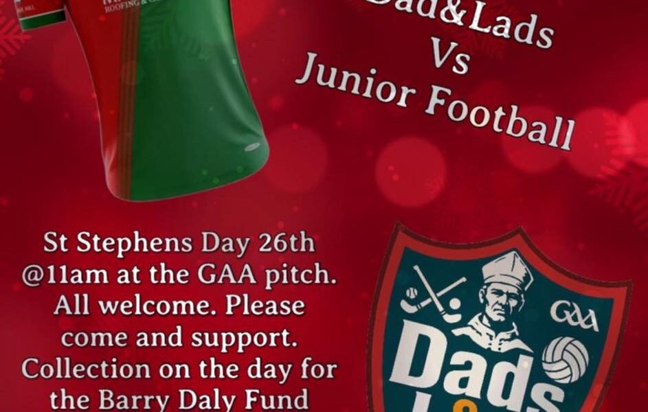 Doneraile GAA will host what is being billed as the “real championship game” on Thursday, December 26th at 11am, as Dads & Lads take on the Junior Footballers in a.