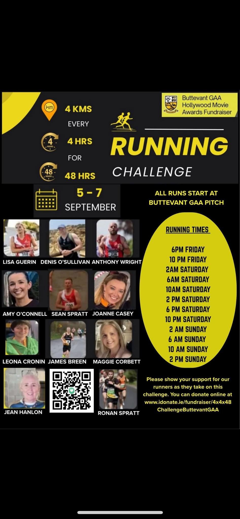 That’s the extraordinary test being undertaken this weekend by some of Buttevant’s biggest characters, all in aid of the club’s development fundraiser. From Friday, 5th September 2025, a group of dedicated participants will set out to run or walk through the day and night, covering a total of 48 kilometres each as they raise money for Buttevant GAA, Juvenile GAA and Camogie.