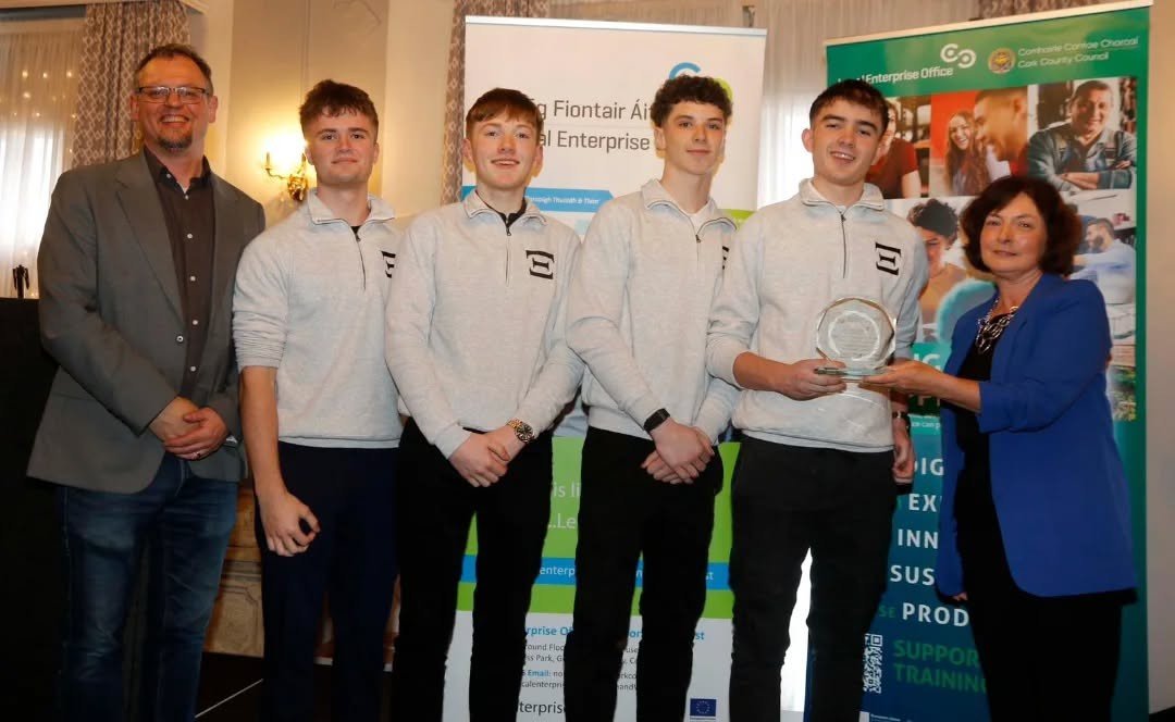 Transition Year students Rory O’Leary, Bill Palmer, Ben Norton and Conor O’Leary, representing Crius AI, secured top honours in the Senior category. Joining them in the winners’ circle was Dylan Walsh, a second-year student and founder of DW Sports, who claimed victory in the Intermediate category.