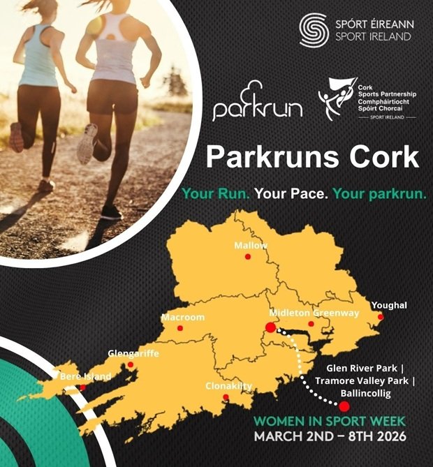 Led by Cork Sports Partnership, the initiative is promoting female participation in local parkruns, with a special invitation extended to women and girls of all abilities to join the Mallow Castle parkrun on Saturday, March 7th at 9:30am.