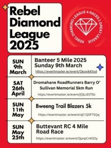 The Rebel Diamond League series will see runners from all corners lace up their shoes and take to the roads for a series of exciting events: