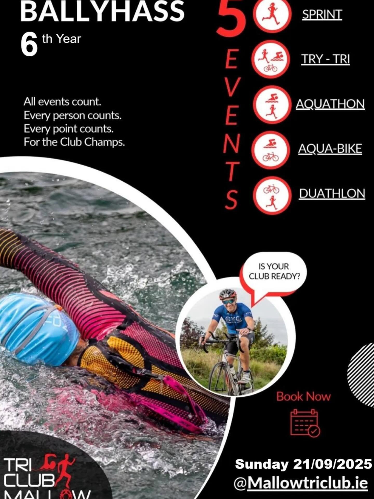 Building on the success of previous years, the 2025 Ballyhass Sprint retains its popular Sprint race and Try-a-Tri event, while adding an exciting new category: the Aqua-Bike.