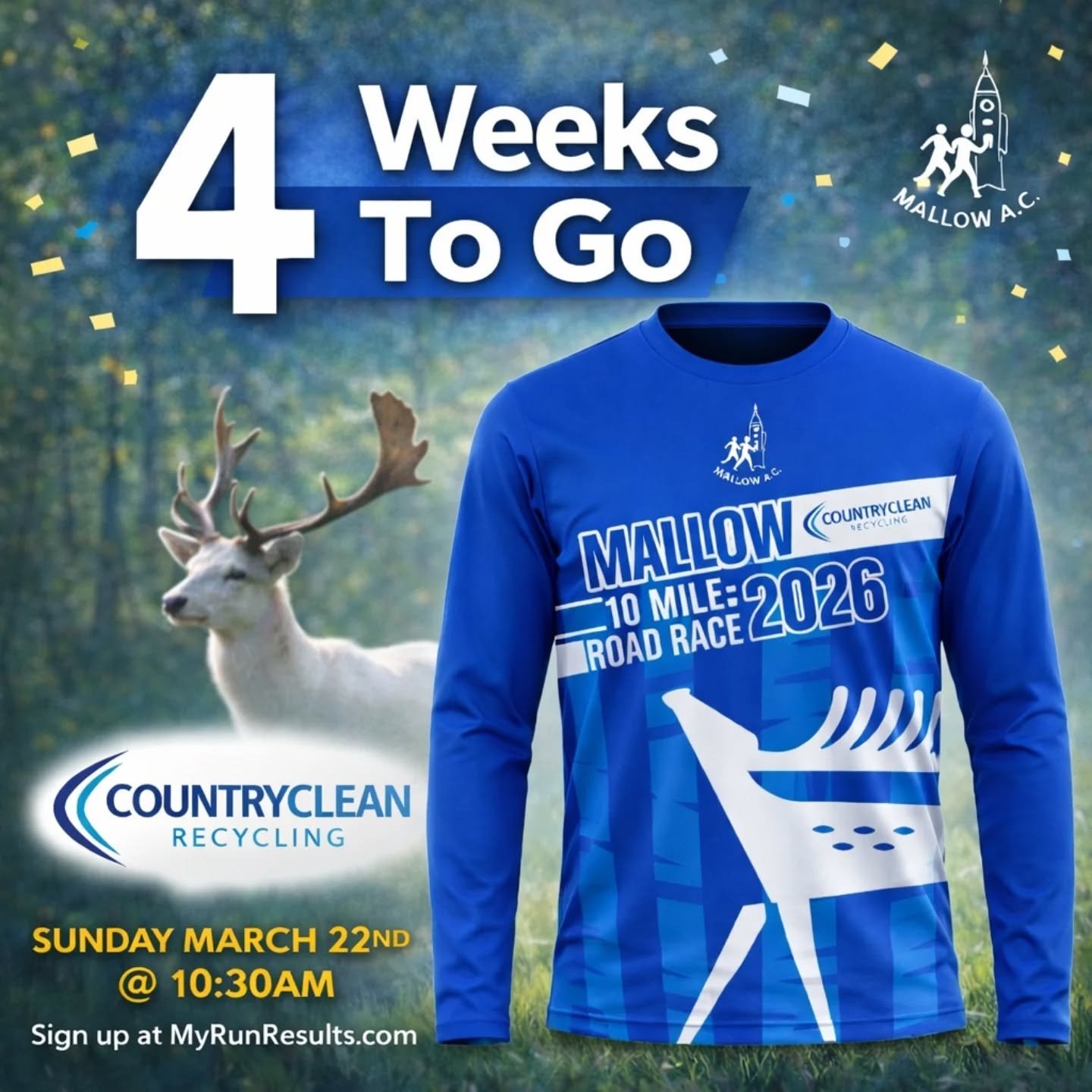The Mallow 10 Mile Road Race is set to return on Sunday, March 22nd, 2026, with a 10:30am start in Mallow, Co. Cork. Hosted by Mallow Athletic Club and proudly sponsored by Country Clean Recycling, the Mallow 10 has established itself as one of the most popular and competitive 10-mile road races in Ireland and a standout event on Munster’s racing calendar.