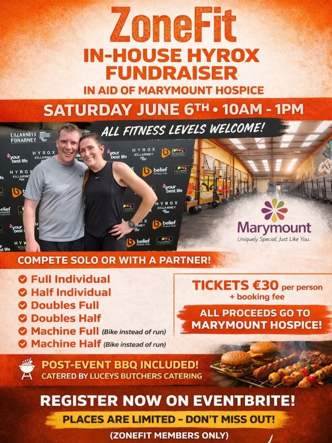 ZoneFit is set to host its In-House Hyrox Fundraiser in aid of Marymount Hospice on Saturday, June 6th, from 10am to 1pm at their Mallow location. The event is open to all fitness levels, offering participants a chance to challenge themselves while supporting a vital local cause.